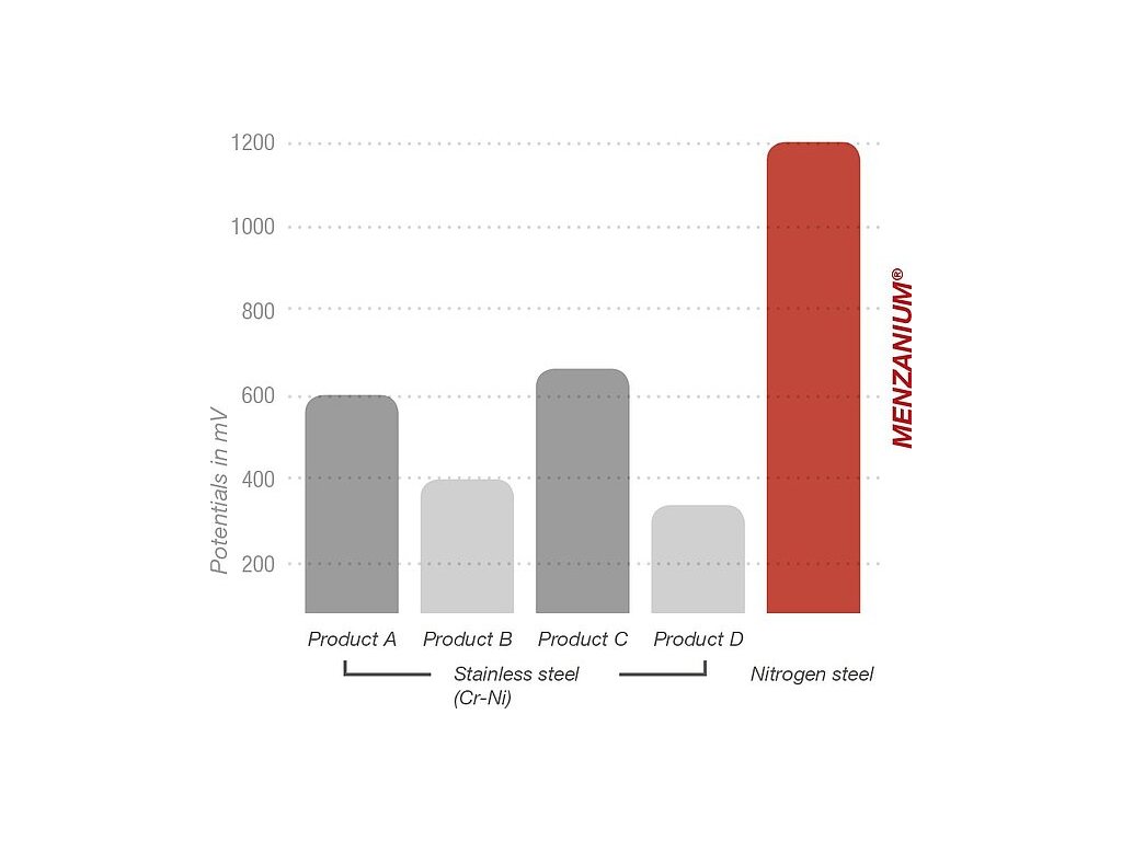MENZANIUM® je zliatina nehrdzavejúcej ocele bez obsahu niklu, vyrobená patentovaným procesom tavenia pri vysokom tlaku, pri ktorom sa alergénne zložky niklu nahrádzajú mangánom a dusíkom.