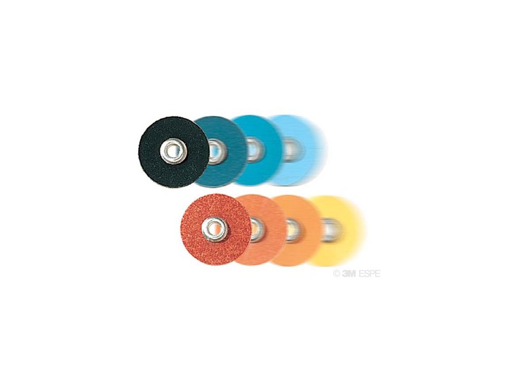 Sof-Lex™ finišovacie a leštiace disky sú dostupné v rozsahu od hrubej po ultra jemnú zrnitosť, jasne farebne odlíšené pre jednoduchú postupnosť a rýchlu výmenu diskov pomocou systému „pop-on/off“ (rýchle nasadenie a odňatie disku jednoduchým zatlačením a uvoľnením).