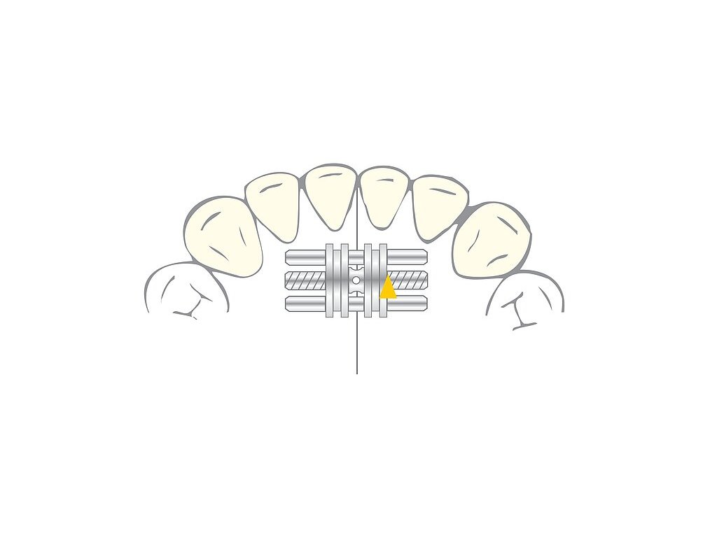 Skrutka na skeletálnu expanziu s jasne žltou smerovou šípkou na priečne roztiahnutie dolnej čeľuste.