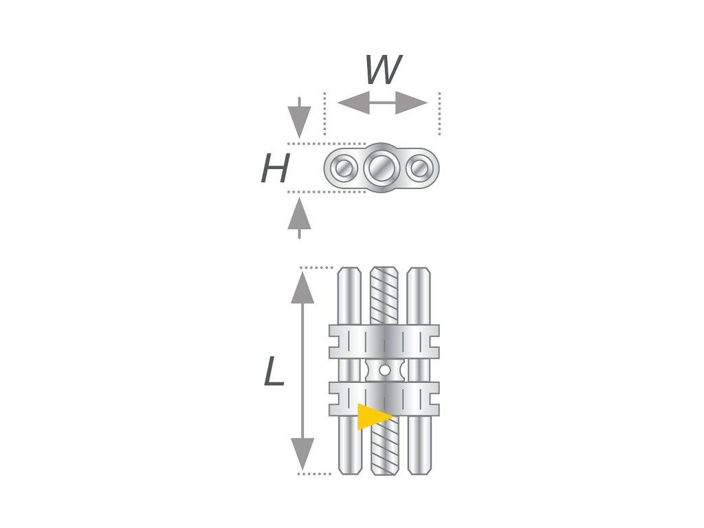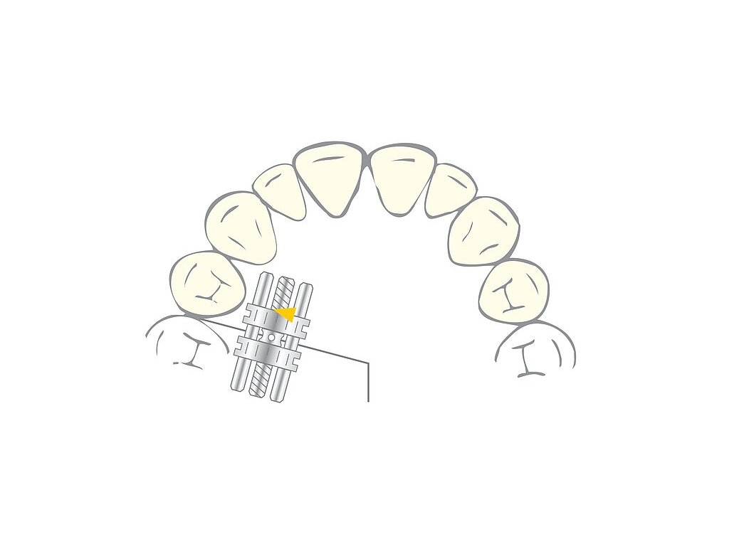Skrutka na skeletálnu expanziu s jasne žltou smerovou šípkou pre transverzálnu a sagitálnu expanziu v hornej a dolnej čeľusti.