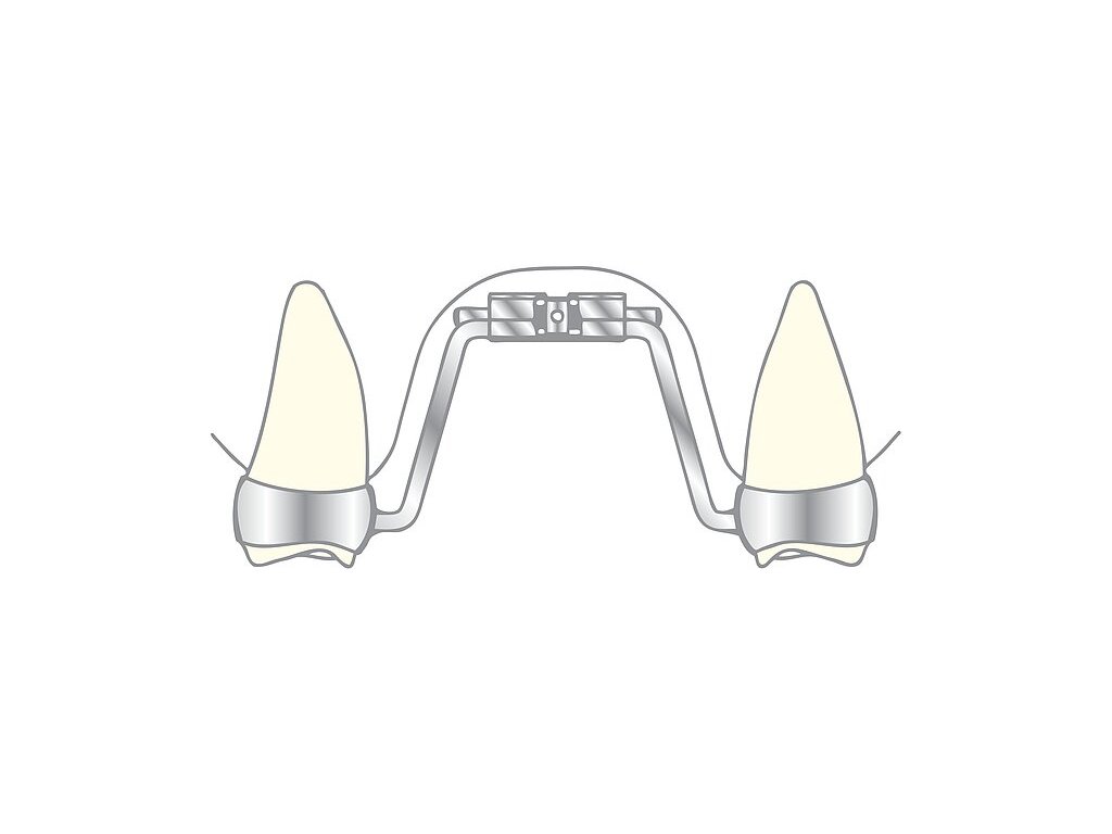 Anatomicky tvarované retenčné ramienka sú prispájkované alebo privarené na molárové krúžky.