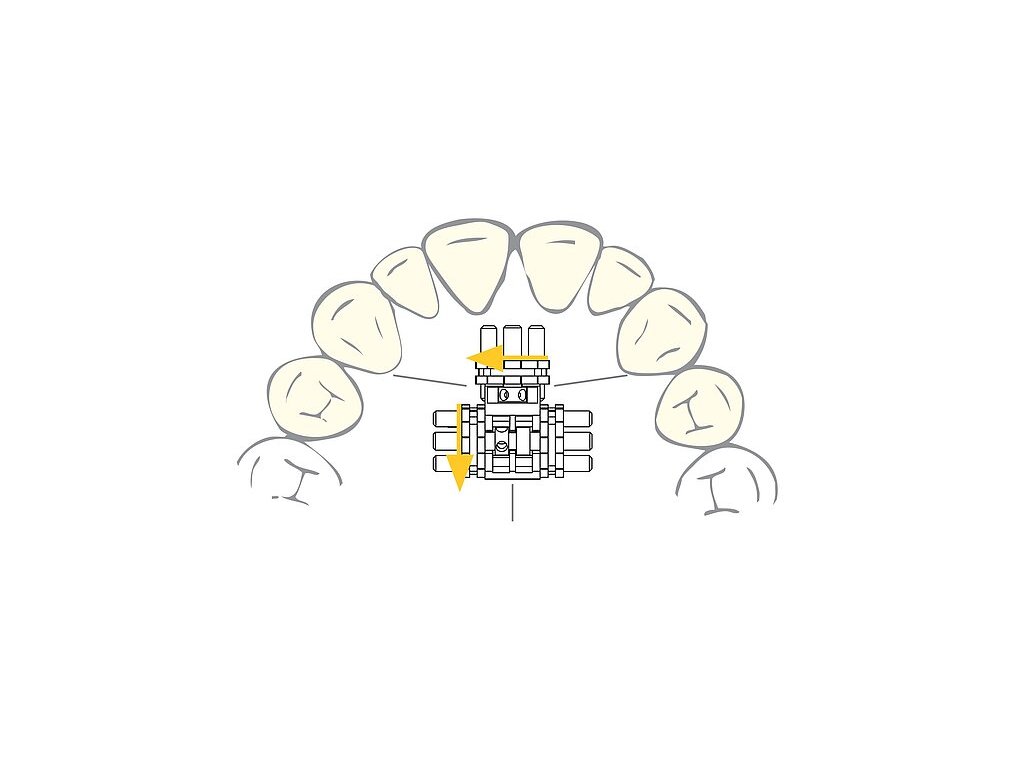 Špeciálna skrutka podľa Bertoniho na vloženie do multi-sektorových platní, umožňujúca separátne predsunutie a symetrické transverzálne rozšírenie pomocou dvoch nezávisle pracujúcich vretien.